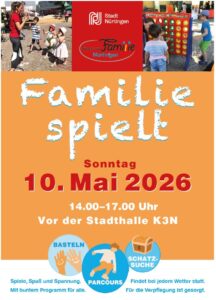 Am Sonntag, den 10. Mai 2026, findet vor der Statdthalle K3N von 14:00 bis 17:00 Uhr mit „Familie spielt“ ein